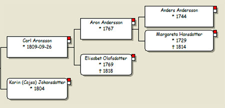 Far: Carl Aronsson. Mor: Cajsa Johansdotter.